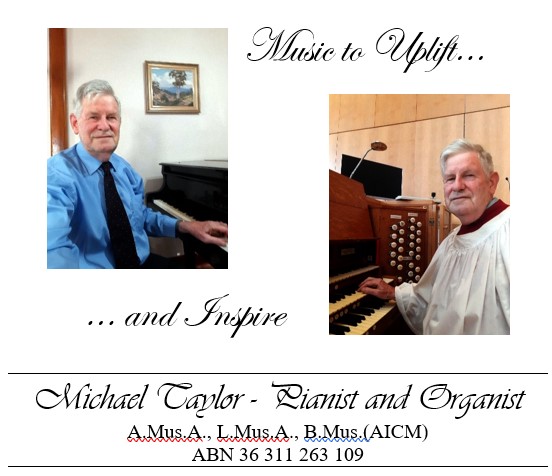 Michael Taylor is classically trained in both piano and organ and has had extensive experience performing as soloist and accompanist on both instruments. He has performed in concerts on both instruments and also regularly fills the role of church organist in several different churches. He is especially known in the greater-Sydney area.
